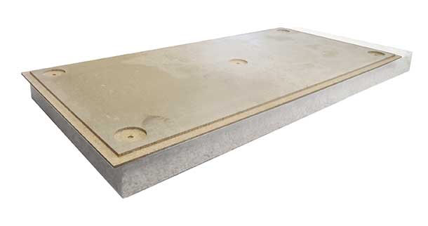 Radiant heating floor system with cement bonded particle boards and cork panels